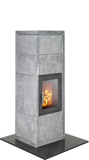 Kube 4 leveres med eller uten sideglass, der sideglassene er elegant integrert i steinen uten stålramme for et sømløst uttrykk. Glassene er doble for å sikre en ren forbrenning og minimere varmeutstråling. Som alle våre Kube-modeller har den en solid dør i høykvalitets støpejern, noe som gir økt stabilitet og lang levetid.