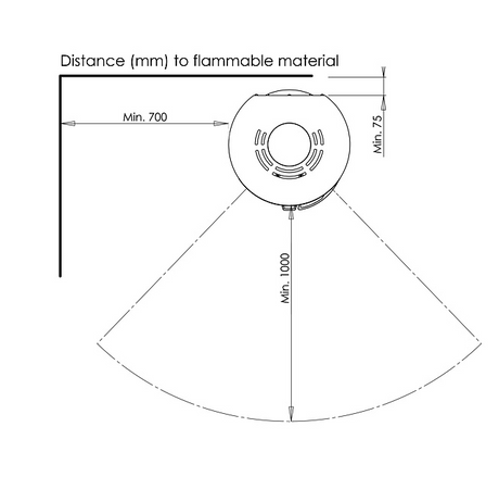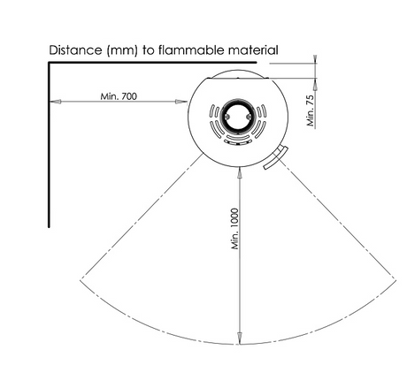 Ø150mm Peisrør D45cm x H70cm buet m/luke og spjeld