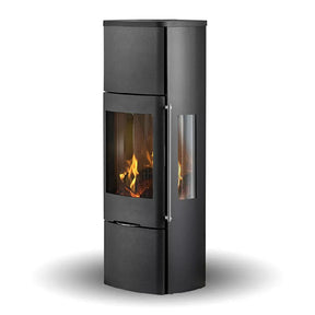 Sideglassene gir et flott innsyn til flammene fra flere vinkler, og bidrar til en lun og behagelig atmosfære. Den har både topp- og bakuttak for fleksibel installasjon, samt mulighet for frisklufttilførsel – en viktig fordel i moderne, tette boliger.