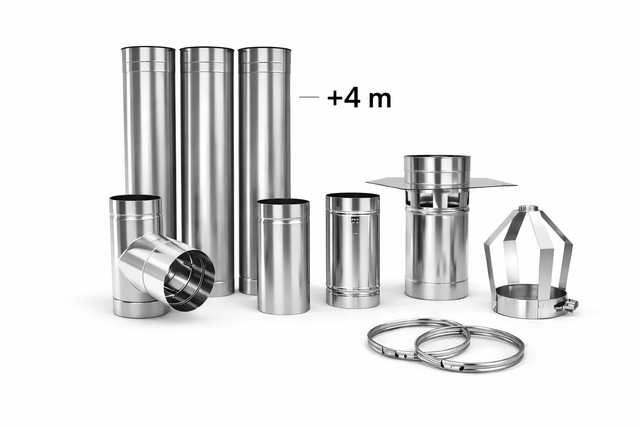 Piperehabilitering 7 meter pakke. Dette er en komplett Ø150mm renoveringsrør pakke med (163mm) koblingsstuss for røykrør i Ø150mm dimensjon.