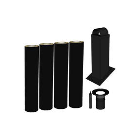 Komplett pipeløsning med startmodul, 4 Smartmoduler, takinndekning, teleskopmodul, regnhatt, diffusjonssperreduk, asfaltmasse, dokumentasjon og monteringsanvisning.