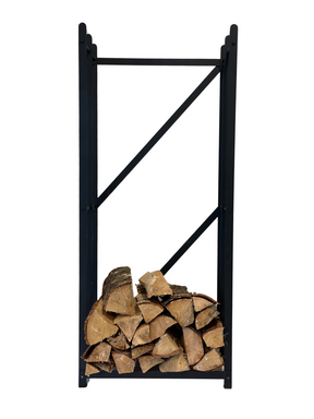 Vedstabler Black Design – Eksklusivt hos Peis & Pipefag - Oppbevar veden din med stil og funksjonalitet ved hjelp av Vedstabler Black Design H100. Med en høyde på hele 114,5 cm gir denne stableren rikelig med plass til vedlengder fra 33–50 cm. Den moderne sorte designen fremhever detaljer som gir et elegant og sofistikert preg til hjemmet.