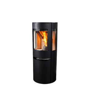 Det buede glasset og sideglassene sørger for unik 180-graders utsikt til bålet, og de spesialdesignede håndtakene gir ovnen et pent og moderne uttrykk. Pelletsholderen er plassert under brennkammeret for lett og enkel påfylling, og det kan romme ca. 13 kg pellets.